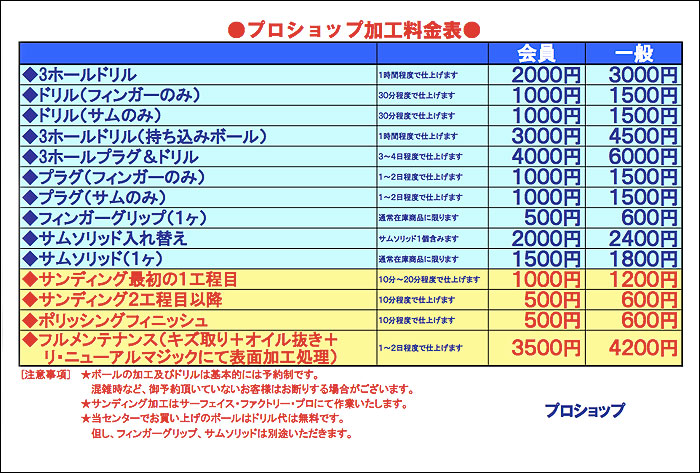 当センターでお買い上げのボールはドリル代はサービスさせていただきます(フィンガーグリップ・サムソリッド代は別途必要)。